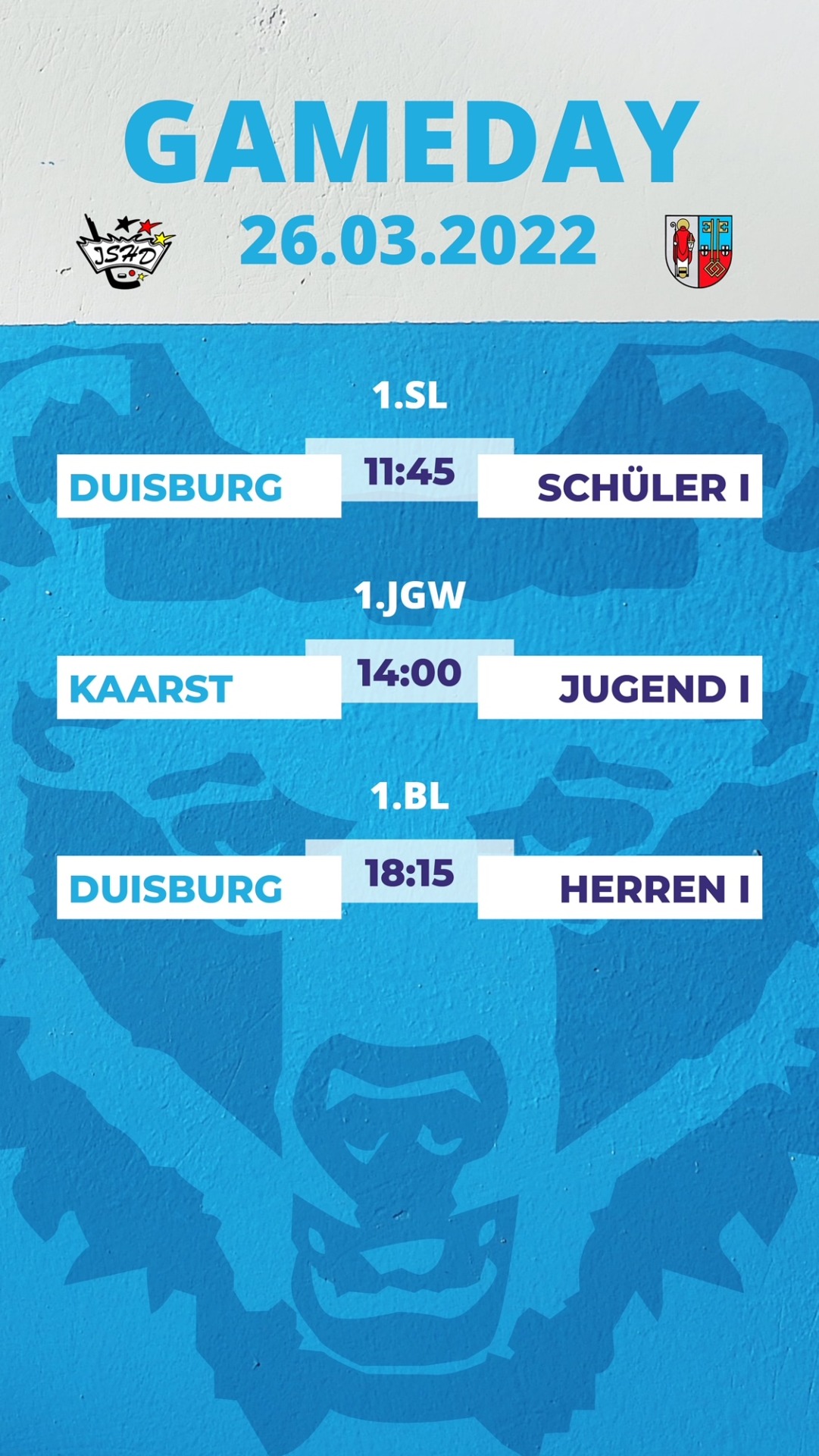 Diesen Samstag müssen die Skating Bears dreimal auswärts antreten. Neben dem abendlichen Nachbarschaftsduell in der 1. Liga (siehe separater Vorbericht) müssen auch die Schüler 1 mittags in Duisburg ran. Ein harter Brocken für die Mannschaft, verlor das Team doch erst letzte Woche im Pokal gegen die Enten deutlich mit 1:8. Die dritte Partie des Tages bestreitet um 14 Uhr unsere erste Jugend bei den Crash Eagles Kaarst. Drittes Derby des Tages, drittes schweres Spiel für die Bears. Traditionell bedeuten die Aufeinandertreffen der Bären und Adler enge Spielverläufe und wir sind gespannt.