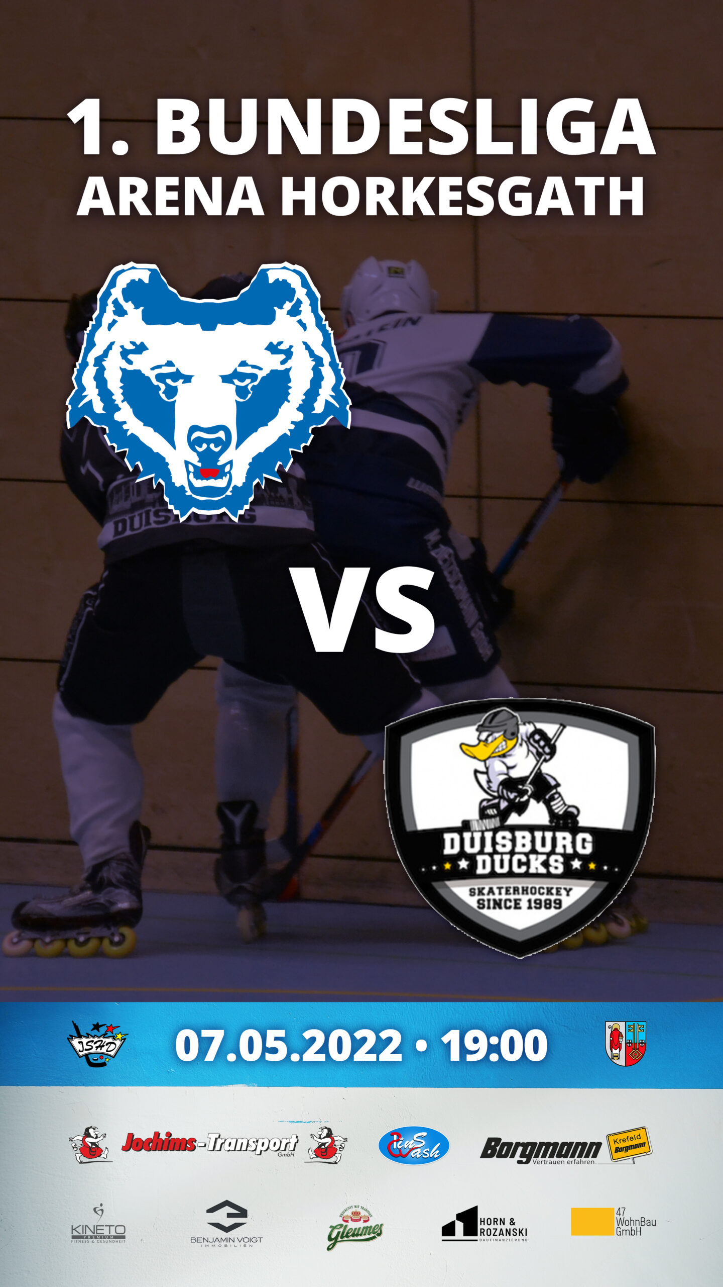Um 19 Uhr gastieren am Samstagabend die Duisburg Ducks in der Arena Horkesgath. Das Hinspiel verloren die Skating Bears – coronageschwächt – knapp mit 6:5 gegen die Enten. Die Krefelder möchten gerne an ihre starke Heimleistung aus dem vergangenen Wochenende anknüpfen und die Punkte in Krefeld behalten. Klar ist aber auch, dass die letzten Aufeinandertreffen der beiden Teams immer knapp waren. Drei der fünf letzten Spiele konnten die Bären für sich entscheiden. Der gebürtige Duisburger, aber lebenslange Bear Dustin Diem erwartet eine traditionell spannende Partie: „Gegen Duisburg waren es in der Vergangenheit immer hart umkämpfte und enge Spiele. Wir müssen die Zweikämpfe annehmen und unser Gameplay aufziehen. Mit unseren Fans im Rücken wollen wir die nächste drei Punkte einfahren.“
