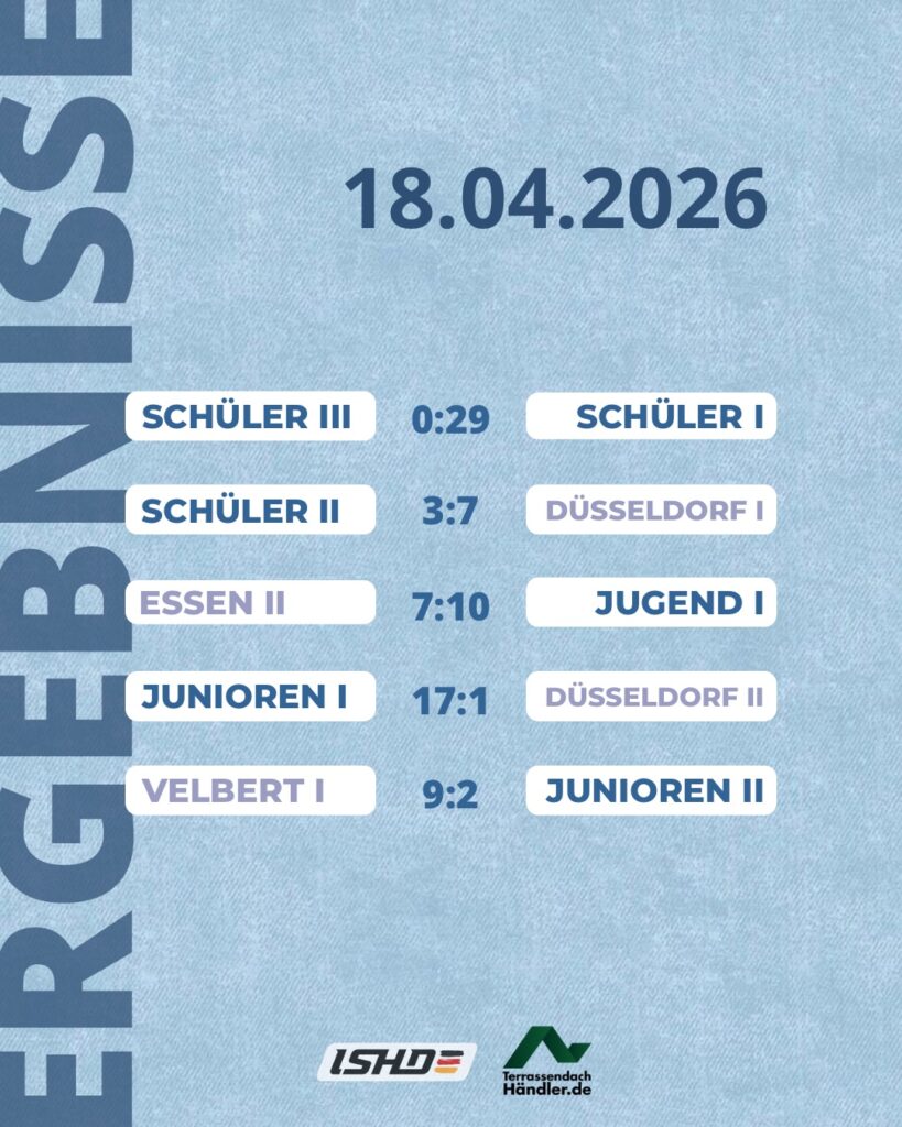 Zum Auftakt gab es direkt eine Besonderheit die so nur im Pokal stattfinden kann; ein vereinsinternes Duell. Am Samstagmorgen traf unsere dritte auf unsere erste Schülermannschaft im Pokalachtelfinale. Das bessere Ende hatte hierbei unsere erste Schüler durch ein 29:0 für sich. Anschließend empfing unsere zweite Schüler die Erstvertretung der ISC Düsseldorf RAMS 1987 e.V., schlug sich achtbar aber unterlag letztlich mit 3:7. In der Folge spielte erste Junioren zuhause gegen die zweite Mannschaft der Rams und ließ den Widdern beim 17:1 keine Chance. Zeitgleich gastierte die erste Jugend bei der Zweitvertretung der ESC Young Eagles Essen – Skaterhockey und zieht durch einen 10:7 Auswärtssieg ins Pokalviertelfinale ein. Nicht ins Pokalviertelfinale geht’s für unsere zweite Junioren die leider 9:2 bei den Commanders Velbert 2002 e.V. unterlag.